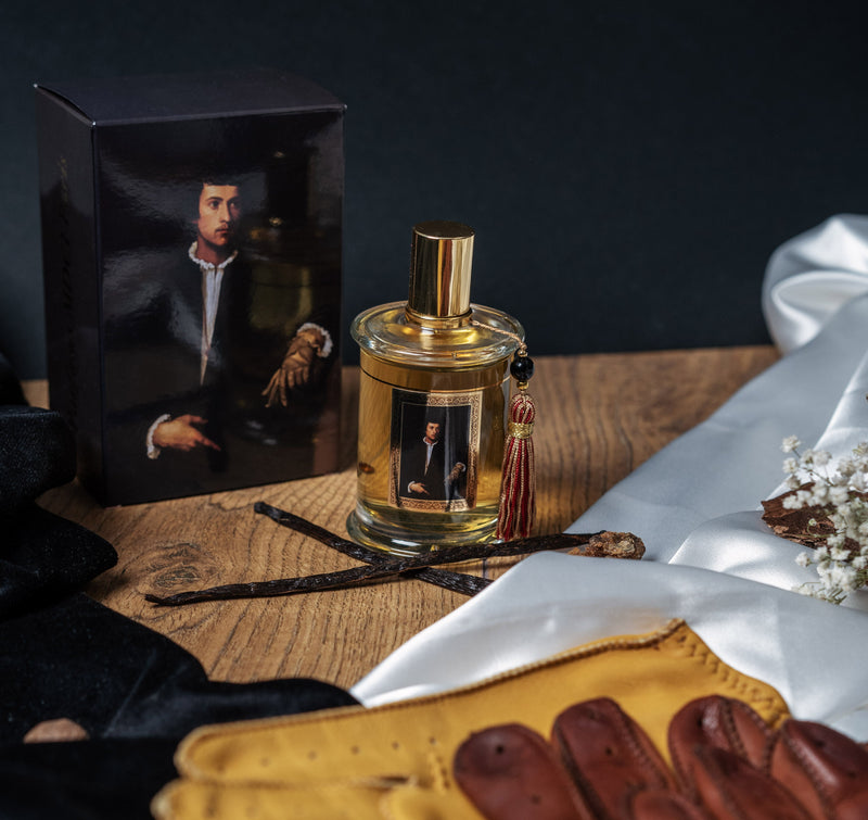 Dette fantastiske portrettet av en ukjent ung mann sannsynligvis en venetianer (ca. 1523) av The Tician har inspirert Nathalie Feisthauer til denne raffinerte og rørende duften. Det originale maleriet kan beundres i Louvre-museet i Paris. En delikat, kremet, treaktig, balsamicotoner som kunstferdig oversetter mykheten, varmen og den delikate teksturen til semsket skinn, den mørke bakgrunnen og melankolien til sitter.